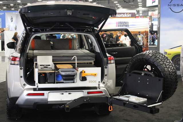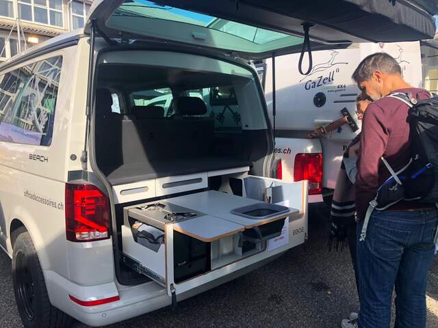 Korpus. To je základ, který vyplní kufr. Zajištěn je pomocí popruhů. K němu je přichycen skládací rošt na spaní. A samozřejmě matrace. Po sklopení zadních sedadel se vše jednoduše rozloží. Uvnitř korpusu mají své místo výsuvné moduly obsahující vařič, nádrž na vodu, lednici, organizéry na nádobí a podobně. Ve složeném stavu neubírá žádné místo pro cestující. Po vyjmutí, na které dvěma lidem stačí pár minut, je k dispozici plnohodnotné auto…