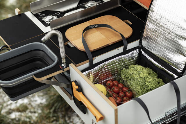Rozšiřuje řadu příslušenství o komfortní prvek, který udrží vaše potraviny v chladu. Potřebné klima tašce zajišťují termoizolační materiály a vnitřní kapsy určené pro chladící vložky nebo chladící gelové sáčky. Celkem 22l poskytuje dostatek místa pro vaše venkovní aktivity. Kompatibilní s Camper 200.