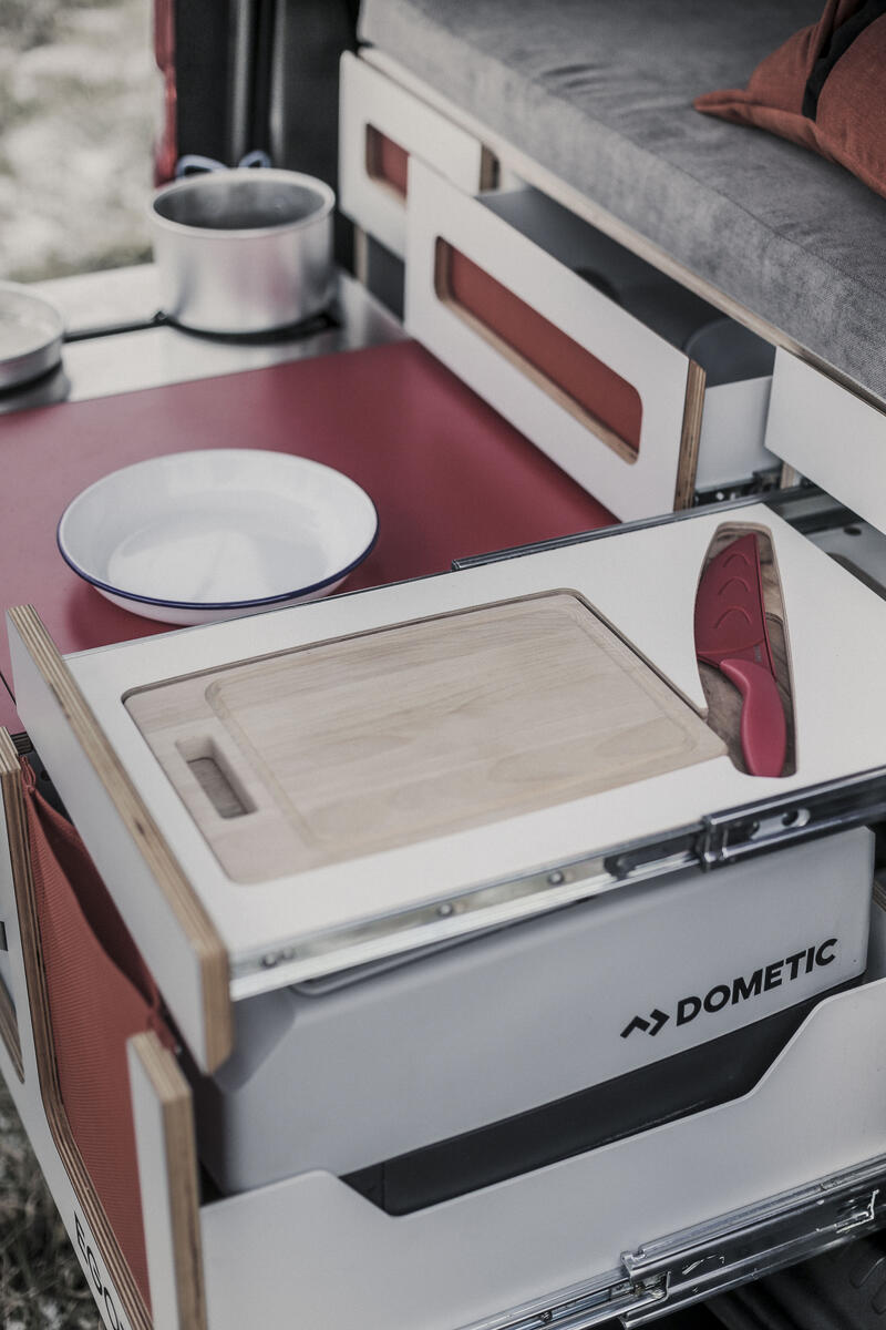 Máte menší osobní dodávku? V takovém případě se seznamte s Nestboxem Hiker, který si ani v nejmenším nezadá se svým větším bratrem a vytvoří stejné pohodlí jen v menším prostoru. Nestbox Hiker obsahuje hlavní zásuvku s prostorem pro vařič, vodu a lednici.