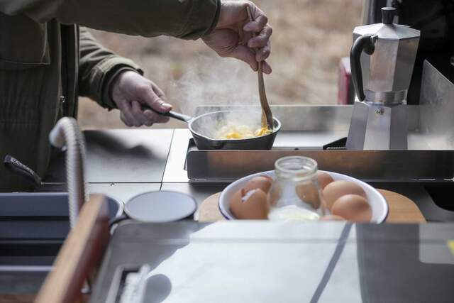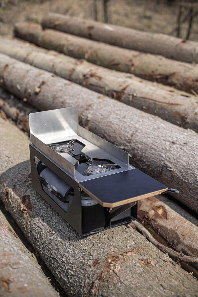 Das Modul besteht aus zwei Brennern, einer Aluminium-Konstruktion aus rostfreien Teilen und Birkensperrholz mit hochbeständiger und fester HPL-Oberfläche. Die rostfreie Fläche auf der Oberfläche des Kochers wurde aus hochwertigem Stahl hergestellt, der auch den anspruchsvollsten Bedingungen standhält.