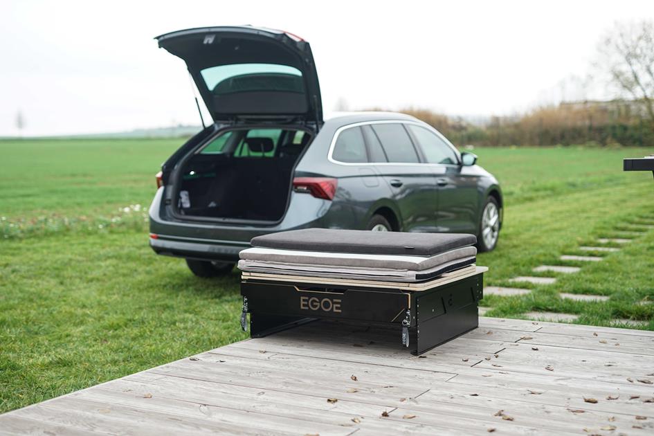 Nowy moduł kempingowy zachwyca również designem wysuwanej części, w której mieści się kuchenka, worek na wodę, pompa i umywalka. Służy jako blat roboczy i stół jadalniany w jednym. Jeśli chodzi o spanie, Nestboard przyjmuje rozwiązanie znane z modułów Nestbox. A więc rozkładany stelaż i materace. W podstawowym układzie powstanie miejsce do spania o długości 200 centymetrów.
